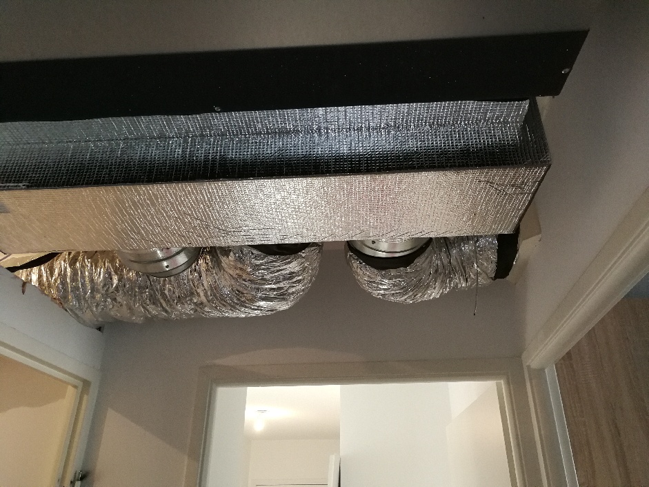 Nous proposons une solution gainable dans le faux plafond du couloir avec distribution par gaines et régulation par pièces.