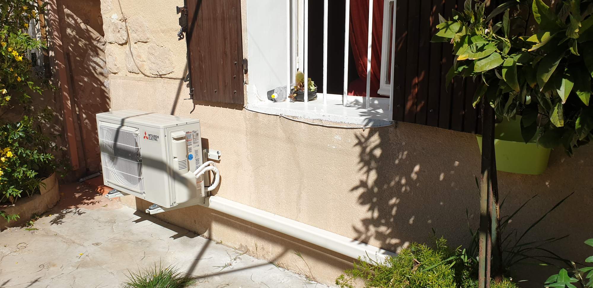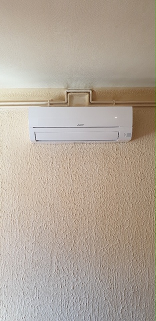 Après un rendez-vous sur site, notre conseiller propose d'installer une climatisation réversible (capable de chauffer et rafraichir) mono-split (une unité extérieure, une unité intérieure) de la marque MITSUBISHI ELECTRIC de la gamme Essentiel. La référence du groupe ventillateur extérieur est MUZ-HR42VF et MSZ-HR42VF pour le split intérieur.