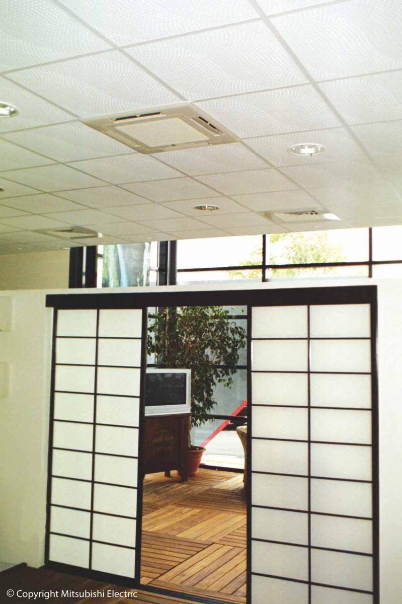 L’unité intérieure de type cassette est un appareil carrossé qui s’intègre dans un faux plafond. Pour les petites puissances dans une dalle 600 x 600.