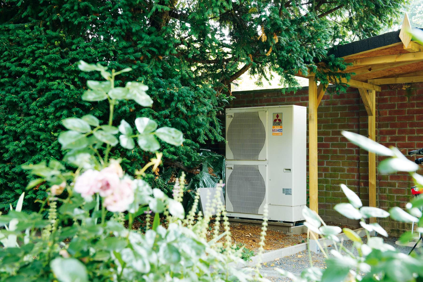 Le groupe de production situé à l’extérieur sur support mural ou sur une dalle flottante au sol.