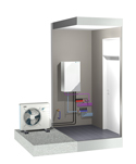 Le module intérieur (de la taille d’une grosse armoire à pharmacie) se situe dans une buanderie ou un cellier, il se compose principalement d’un échangeur de chaleur, d’une pompe de circulation et d’un vase d’expansion.