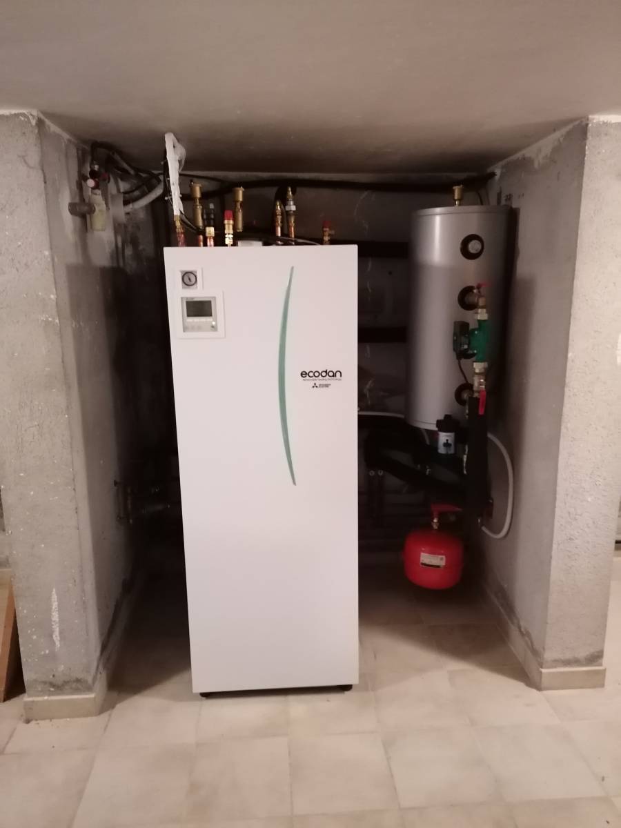 Une visite sur site a été effectué et nous sommes intervenus dans le chantier très rapidement. La machine installé était de la marque MITSUBISHI ELECTRIC Moyenne température de référence PUD-SWM100VAA Chauffage seul + Eau chaude sanitaire 11kW.