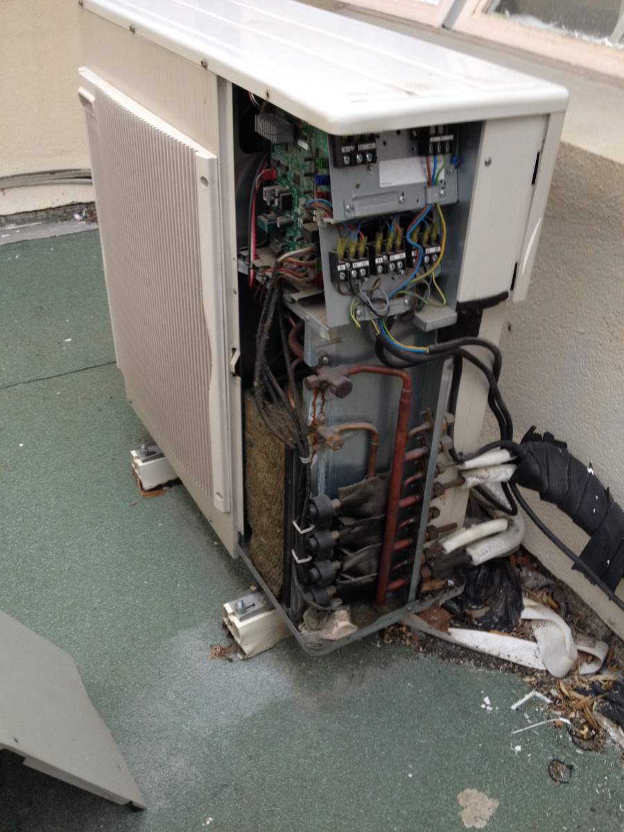 La recherche de fuite sur cette installation a été facilement identifié grace au trace de gaz sur les raccords du groupe extérieur.